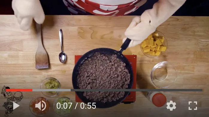 - Put cubed Velveeta in microwave safe dish and add Cooked Ground beef.