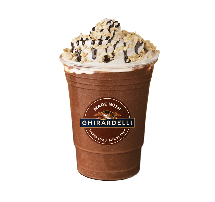 As a follow up to the wildly popular Frozen Hot Chocolate Frappe, Frisch’s newest drink is Ghirardelli frozen hot chocolate mixed with crunchy peanut butter then topped with whipped topping, a drizzle of chocolate sauce, and a sprinkle of peanuts. If you like, you can add a rich, complex kick of Cold Brew coffee.