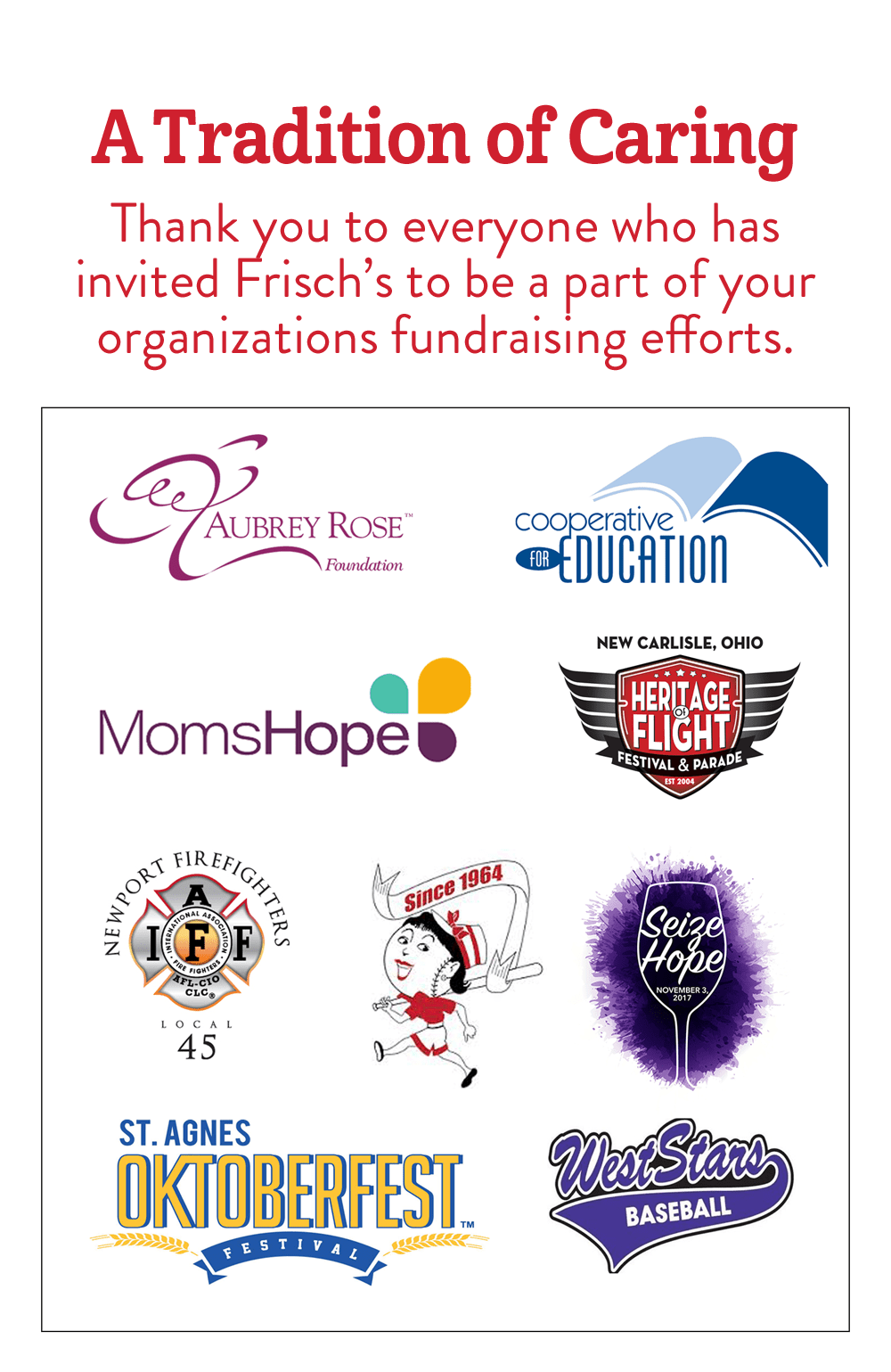 Thank you for inviting Frisch’s to be a part of your organization’s fundraising efforts. Please fill out the form & allow atleast 4 weeks prior to the date of the event. Please complete all fields. Please note Frisch’s is unable to donate food items due to food safety concerns.